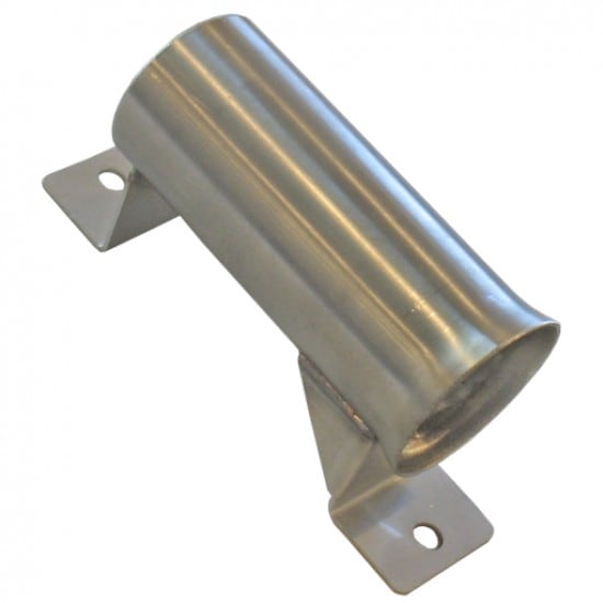 Stainless steel wand holder 6" long with flared end for easy entry of wash gun. Open bottom end to prevent water accumulation. Mounting tabs for easy installation on wall.