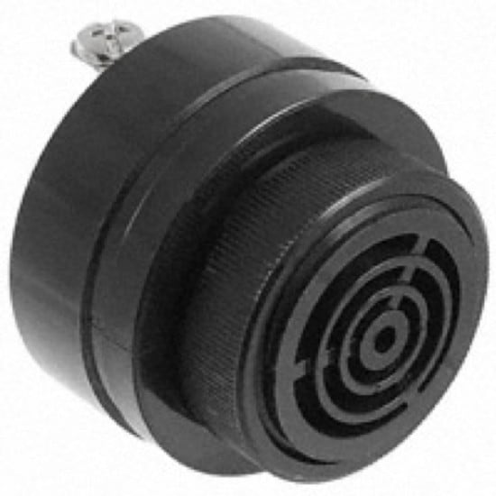 Panel mount continuous tone piezo buzzer. ABS construction. Mounting nut included.