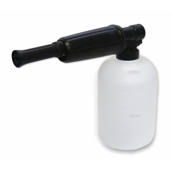 Airless foamer adds convenient and portable foaming to your pressure washer. Attaches to the high pressure outlet to provide foam when using a suitable foaming agent. Easy to fill wide mouth bottle with fill markings holds 1 liter. Integrated stainless steel injector. Five position metering valve to adjust the foaming agent concentrate. 1/4" fnpt inlet connection. Rated from 1000 to 4350 PSI and 1.32 to 5.2 GPM.