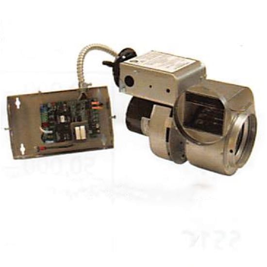 Side wall power venter for use with HWG40 heater. ProSafe II control on HWG40 provides full interlock control with power venter. Power venter allows venting to be reduced from 10" to 6" and to be vented through an exterior wall. CSA approved.