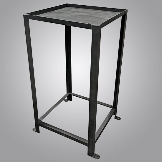 Raised heater stand for HWG40 or HWG20 heaters positions heater above MX pressure washers. Provides compact floor area for the combination. Raised sides contain moisture which can drain through threaded fitting. Also may meet code requirements for open flame in vehicle service areas (needs to be verified with gas installer).