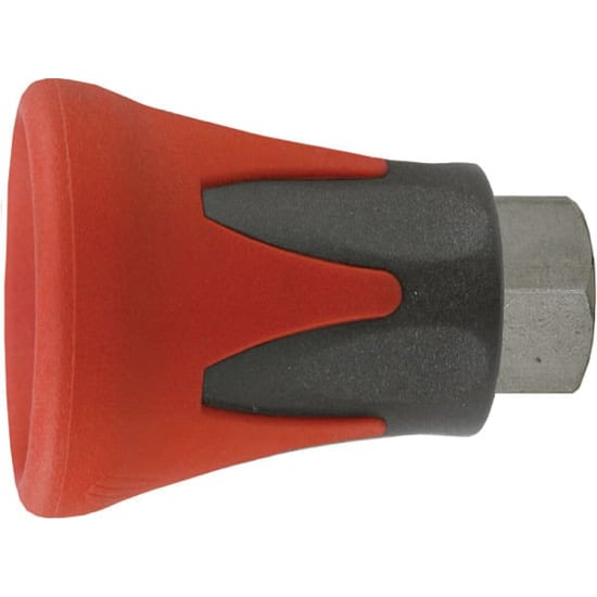 Nozzle Protection to vehicles and spray nozzle. Nozzle is surrounded by a protective cover. Cover also has a soft edge further prevent damage to sensitive surfaces. Stainless steel body works with 1/4"mnpt spray nozzles.