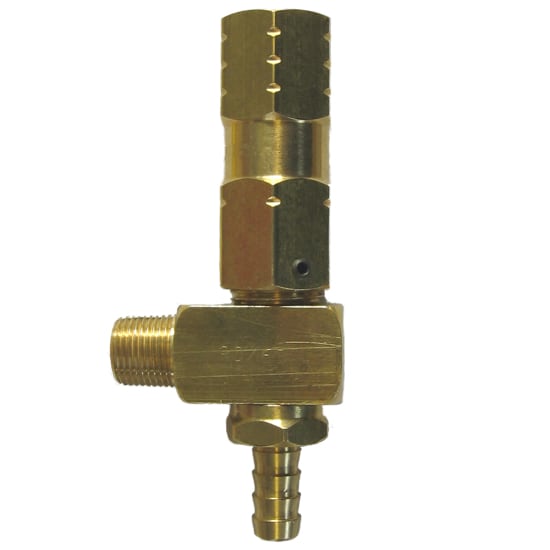 Relieves excess pressure preventing damage to pump. Brass construction with stainless steel spring. Adjustable set screw allows valve to be set at a specific pressure. Off line mount.