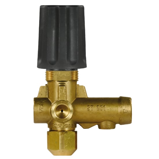 Pressure actuated unloader operates from 500 to 3600 psi. Stainless steel and brass construction. Straight flow through design minimizes pressure loss through the valve. Teflon and Viton seals are standard. Max temperature is 175°F.